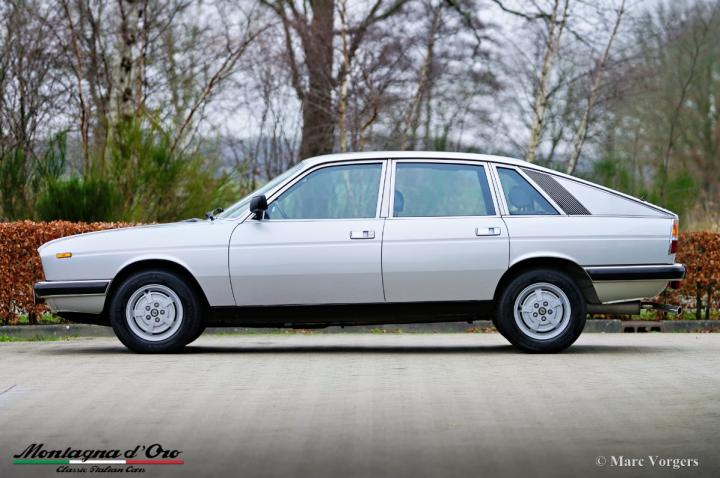 Lancia Gamma 2000 Berlina, jaar 1981. Chassisnummer ZLA830A32000066XX, motornummer 830A2000*0112XX* Kleur goud metallic (Oro Metallizato) gecombineerd met een beige stoffen interieur en donkerbruin tapijt. De Lancia Gamma Berlina van de 2e serie (1980-1984) met de 2 Liter boxermotor werd enkel in Italië verkocht, een zeldzaam model waarvan er slechts 2465 werden gebouwd. De auto is ontworpen door Pininfarina en technisch was alles aan de Gamma het neusje van de zalm. De Gamma is voorzien van volledig onafhankelijke wielophanging, schijfremmen aan alle wielen en een vijfversnellingsbak. Dit prachtige exemplaar is op 21 maart 1981 nieuw geleverd aan Francesco en Anna Marzo door de Lancia dealer in Lecce, Italië. De heer Marzo was arts in het plaatselijke ziekenhuis en de auto werd gebruikt in de weekenden en voor langere ritten. De heer Marzo overleed in het jaar 1997. Vanaf dat moment stond de Lancia in de garage. Mevrouw Marzo kon geen afscheid nemen van de Lancia. Na haar dood, ruim twintig jaar later, werd de auto door de familie verkocht. Onze contactpersoon trof de Lancia aan in volledig originele staat en met iets meer dan 21.100 originele kilometers op de teller. De auto kreeg een perfecte en professionele nieuwe lakbeurt en nieuwe achterlichten (deze vertoonden enige barsten) werden vernieuwd. Het beige stoffen interieur en het bruine tapijt zijn nog altijd in perfecte staat en als nieuw! Na interne reiniging en service van de mechanische delen hebben we de motor weer tot leven gebracht. De distributieriem wordt bij afleveringsbeurt van de auto vernieuwd. De teller staat momenteel op 21.136 kilometer. Deze Lancia Gamma Berlina verkeert in een zeer goede tot uitstekende originele staat! De auto wordt geleverd met Italiaanse documenten. Deze zeldzame Lancia Gamma Berlina is een prachtige vondst voor de Lancia verzamelaar/liefhebber.