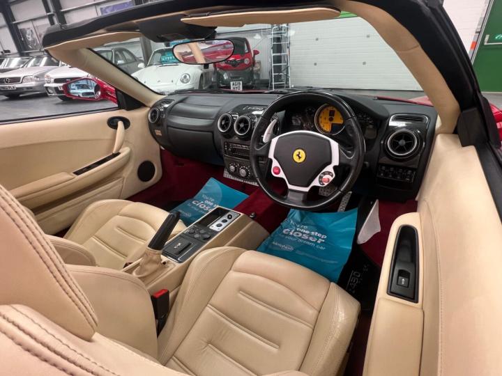 just serviced @ Graypaul as of 13/06/2025 18,306 miles. Probably one of the best lowest mileage examples available Today. The colour combination every Ferrari should be Rosso Red Gloss with Crema Hide classic! Absolutely stunning all round example, that has been kept in beautiful condition, from the moment you switch this car on it just feels special. Benefits from a wired in trickle charger to keep the battery optimised for when not used, and supplied with the original factory passport and a full set of documents. Ferrari main dealer service history all present to back up how well this car has been cherished