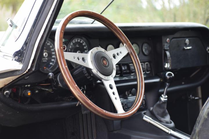 I am delighted to offer for sale this Jaguar E Type V12 OTS. First registered in March 1974, making it one of the last produced, production ceasing in June of that year. Chassis No: 1S 25471 being one of only 63 tax free home market cars delivered by Henly’s of London and 1 of only 2 V12 LHD OTS manual cars delivered by them and registered in Coventry on the 23 August 1974, carrying registration No: NWK 213N.