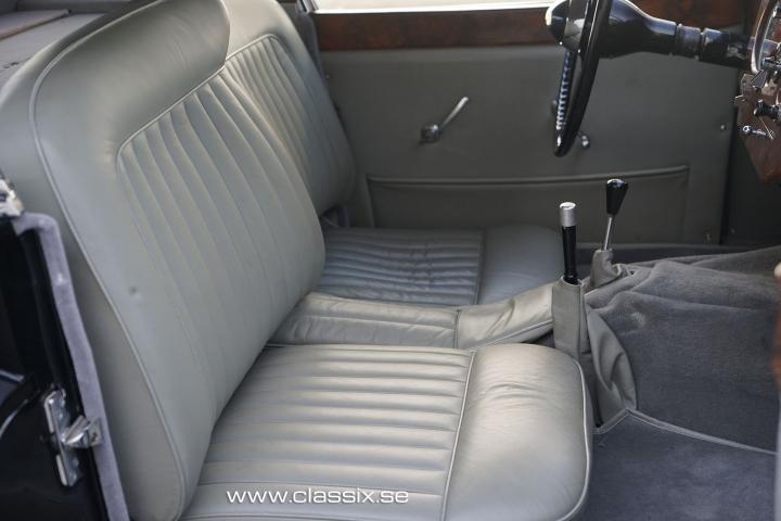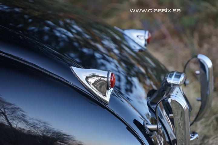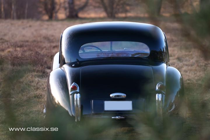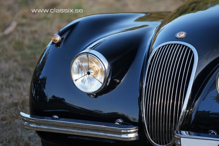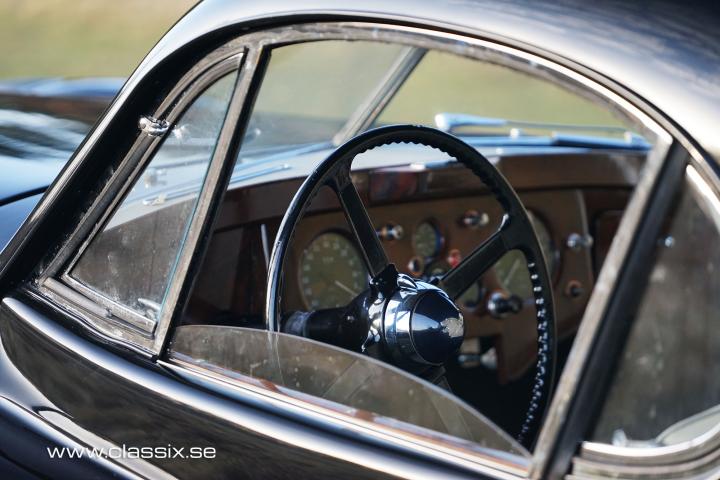 Exterior: The Jaguar XK120 Coupe 1952 looks stunning in black. To make it stand out and look a bit racier, the spoke wheels were painted in red. It is today wearing an older paintwork with small traces of use. The chrome pieces are also in excellent condition and make a great contrast to the black paint. Underneath the car looks as nice as it does on top. The entire frame has been painted and is 100% free from rust and sticky rust protection.