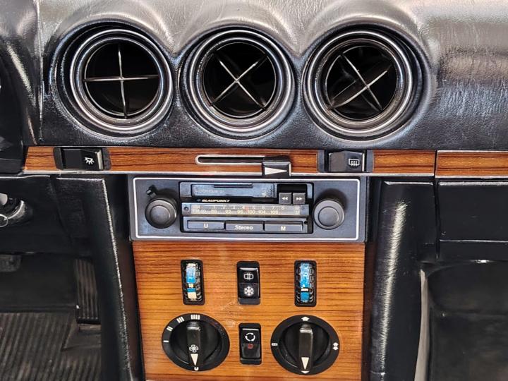 Notably, it is equipped with factory air conditioning, a rare option at the time, as well as a period-correct Blaupunkt Stockholm radio.