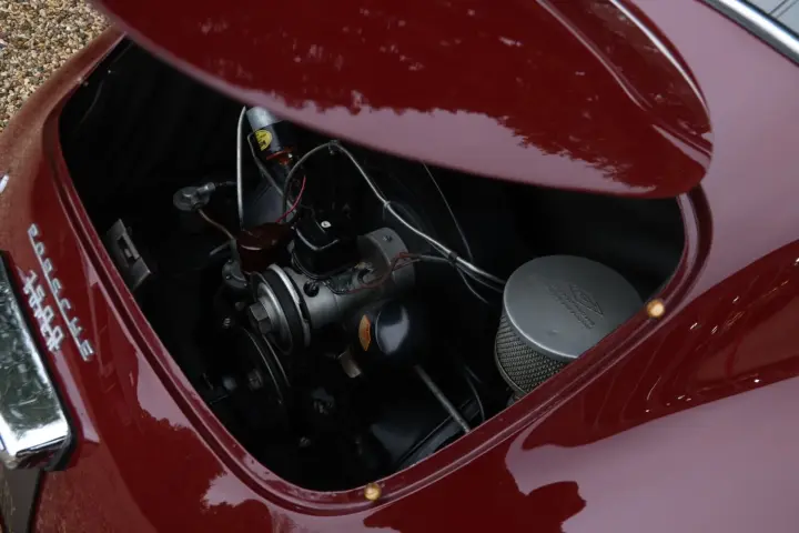 Under the rear deck lid lies the beating heart of this beauty: an air-cooled, 1,500 cc flat-four engine. In Super specification, it produced an impressive 70 horsepower — quite an achievement for its time. From that model year onward, the 356 also featured a fully synchronized gearbox — a technical innovation that transformed the driving experience. Every shift, every corner, every acceleration felt smooth and precise, exactly as Ferdinand Porsche intended.
