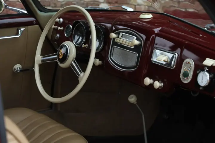 What makes this Porsche 356 particularly special is its authenticity. It remains largely original, having been repainted only once in its lifetime — a careful respray done with full respect for the car’s heritage. The color combination is still the authentic Pascha Red over beige leather, exactly as it left the factory. It also comes with its official Porsche Birth Certificate, confirming its matching numbers and original colors. The bodywork is beautifully straight and well-preserved, and the paint presents in great condition. Inside, you’ll find exquisite period details that speak to its craftsmanship and care. Every aspect of this car exudes originality and quality.