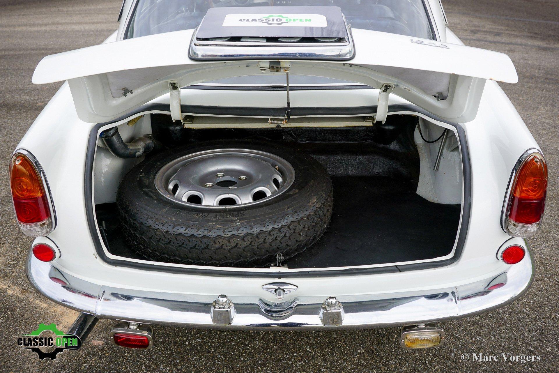 Ook het interieur is opnieuw bekleed. De 1570 cc ‘twin-cam’ viercilindermotor, de vijfversnellingsbak, de koppeling en de remmen (trommelremmen rondom) functioneren perfect.
