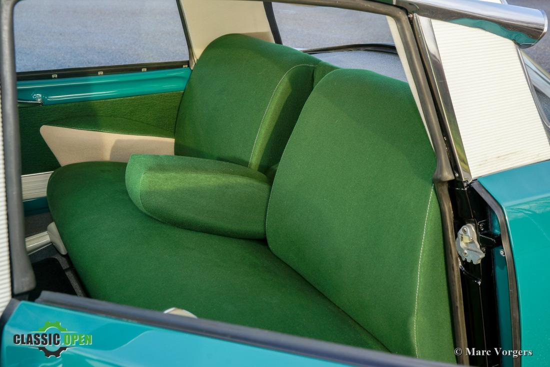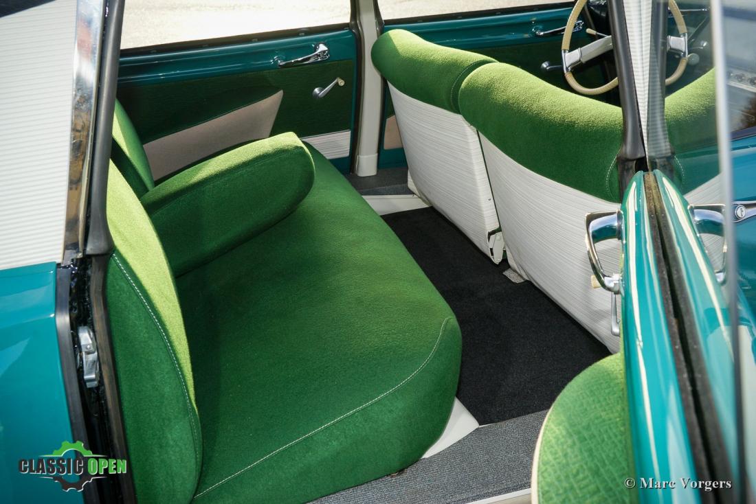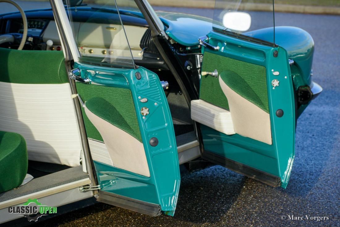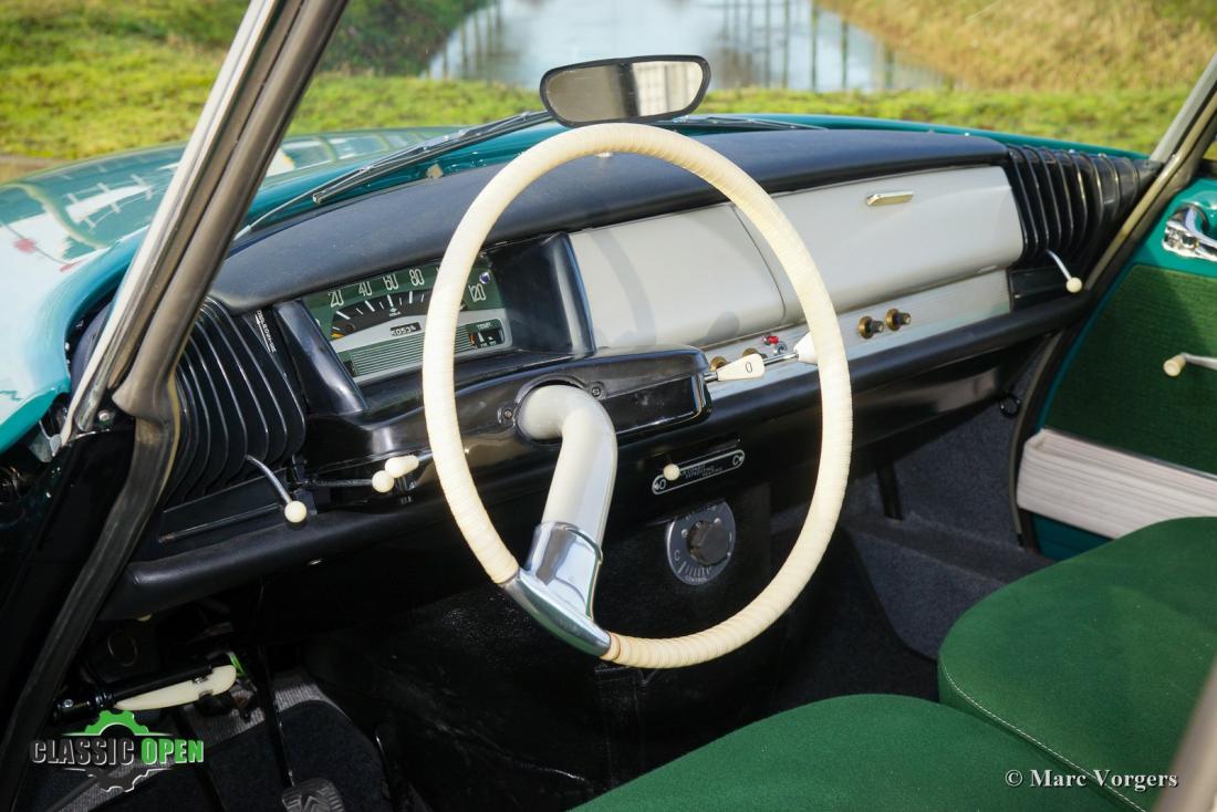 Het interieur is opnieuw gestoffeerd naar originele specificaties. Het dashboard is voorzien van vele fantastische details zoals het unieke enkel-spaaks stuur, de leuke ventilatierooster hendels en de vele kleine draaischakelaars.